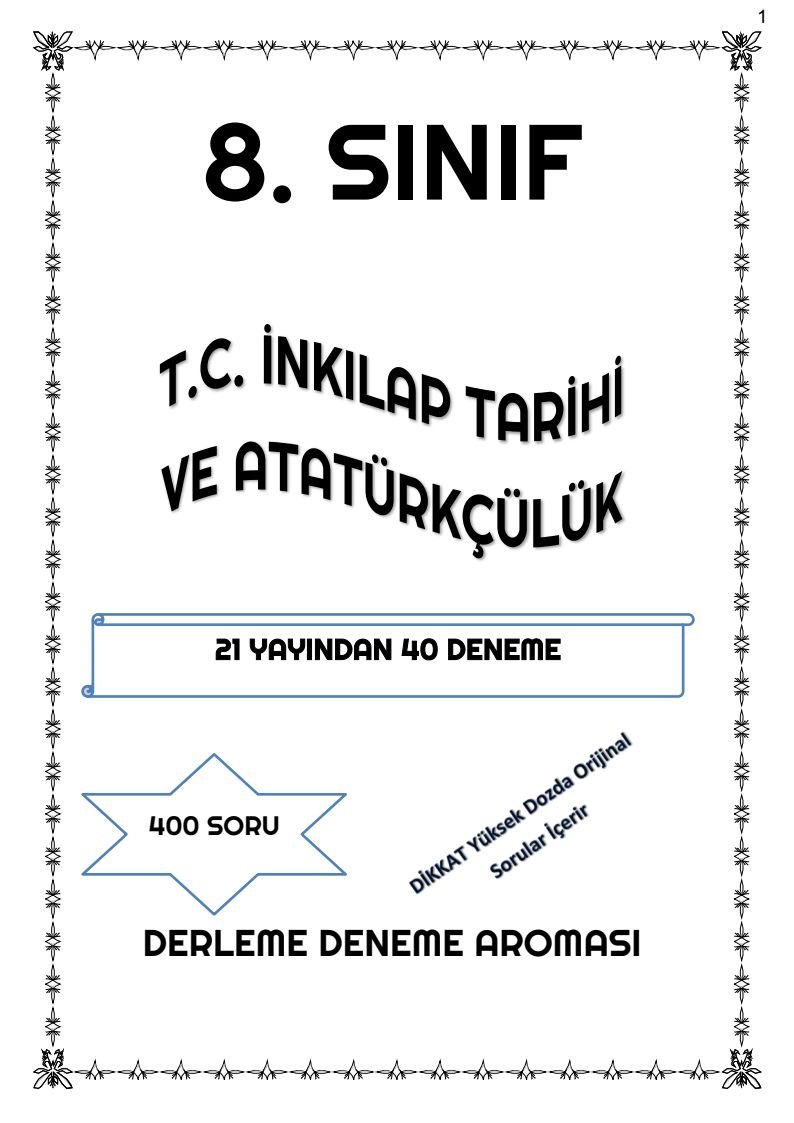 T.C. İNKILAP TARİHİ VE ATATÜRKÇÜLÜK 21 YAYINDAN 40 DENEME YKS Fotokopi