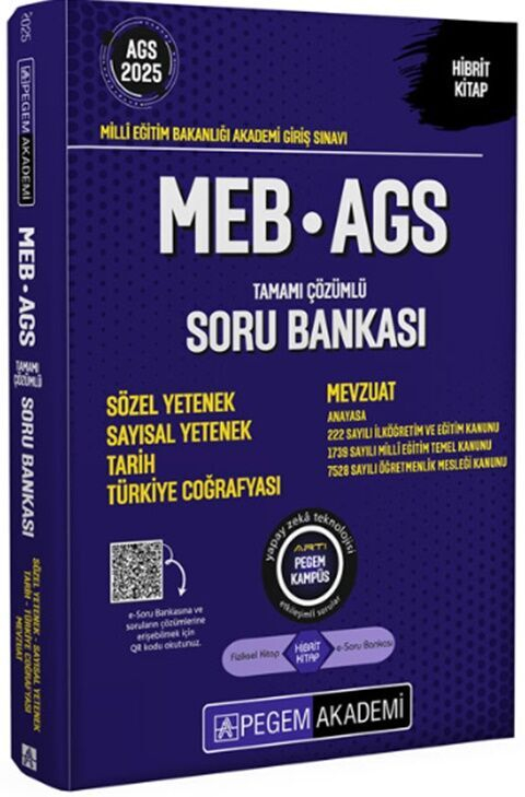 2025 MEB-AGS Sözel-Sayısal Yetenek, Tarih, Türkiye Coğrafyası, Mevzuat Soru Bankası Çözümlü Pegem Akademi Yayınları