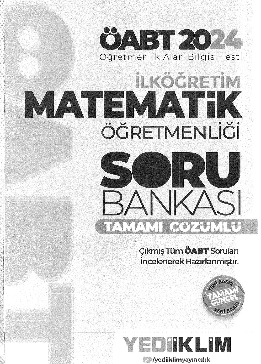 İLKÖĞRETİM MATEMATİK ÖĞRETMENLİĞİ SORU BANKASI TAMAMI ÇÖZÜMLÜ YKS Fotokopi